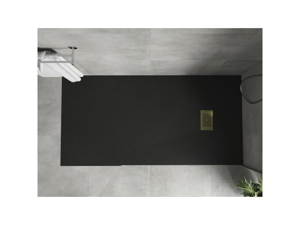Mexen Hugo obdĺžniková sprchová vanička SMC 180 x 80 cm, čierna, zlatá mriežka - 42708018-G