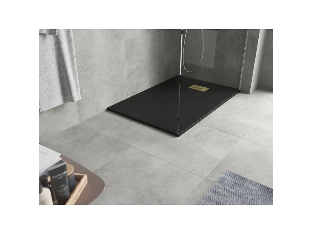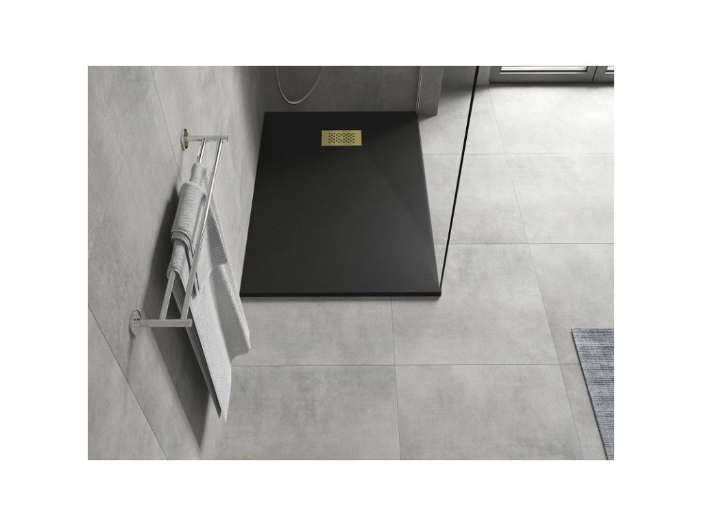 Mexen Hugo obdĺžniková sprchová vanička SMC 90 x 70 cm, čierna, zlatá mriežka - 42707090-G