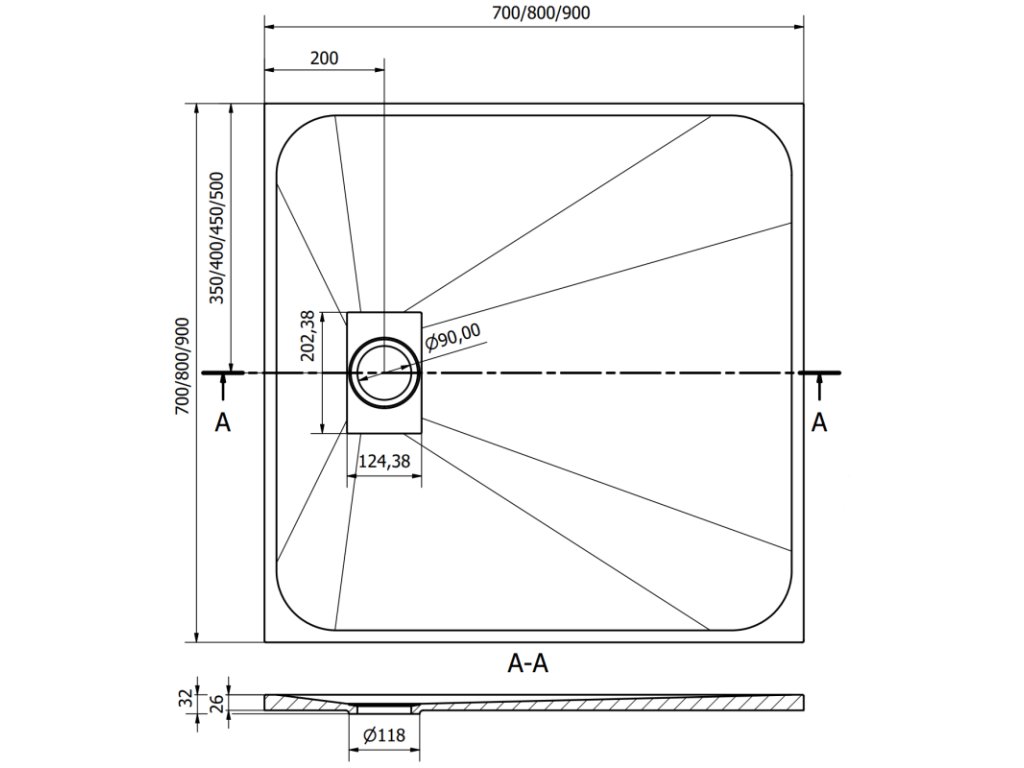 Mexen Hugo sprchová vanička štvorcová SMC 80 x 80 cm, biela - 42108080