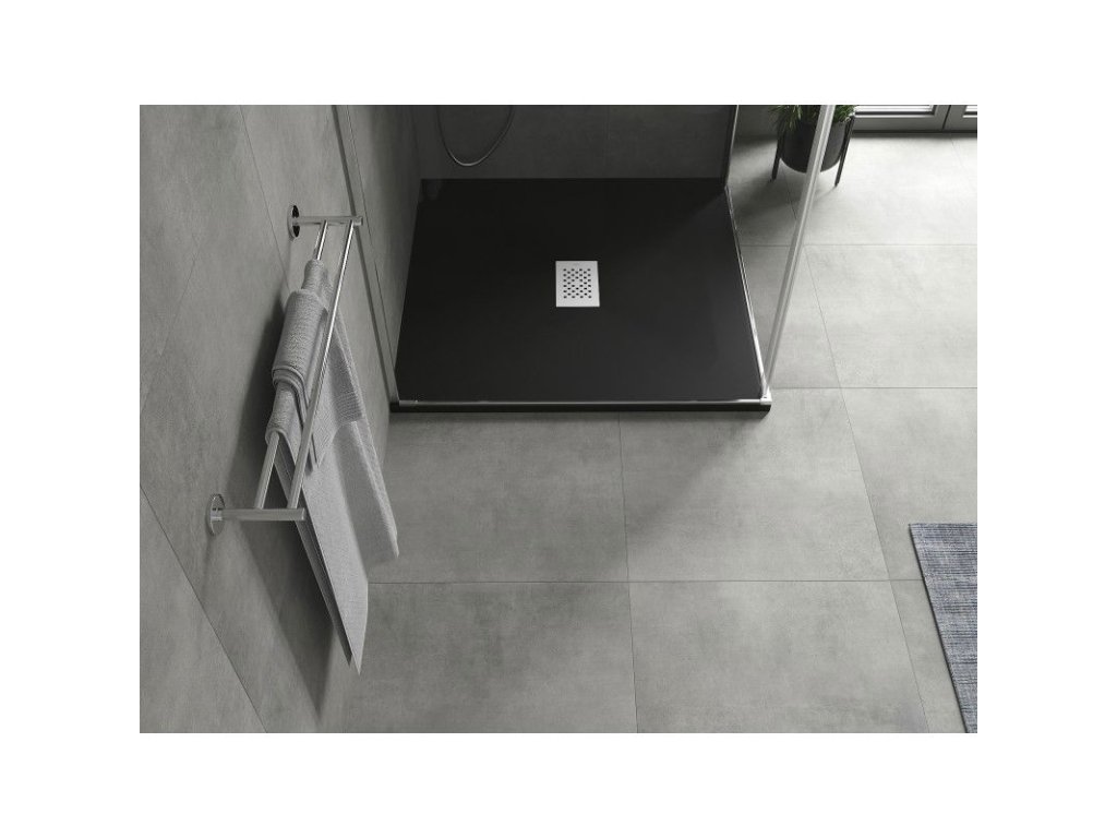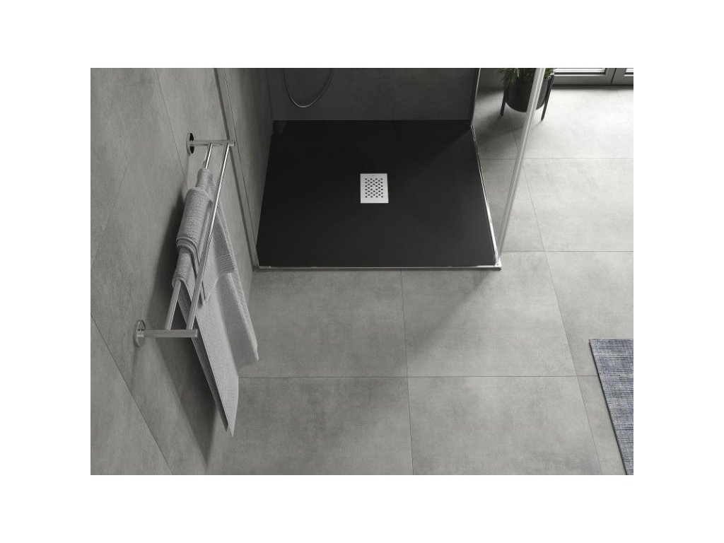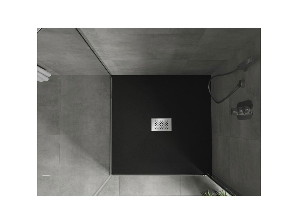 Mexen Hugo štvorcová sprchová vanička SMC 100 x 100 cm, čierna, inoxová mriežka - 42701010-X