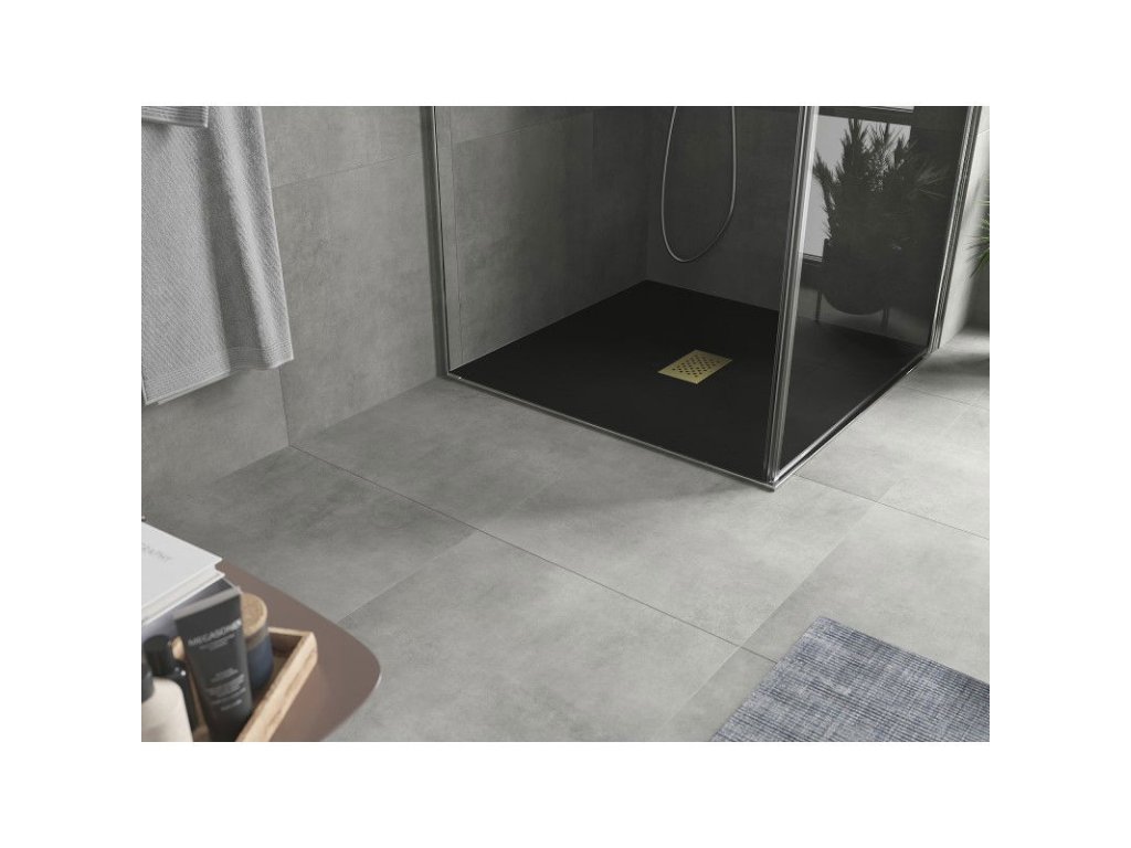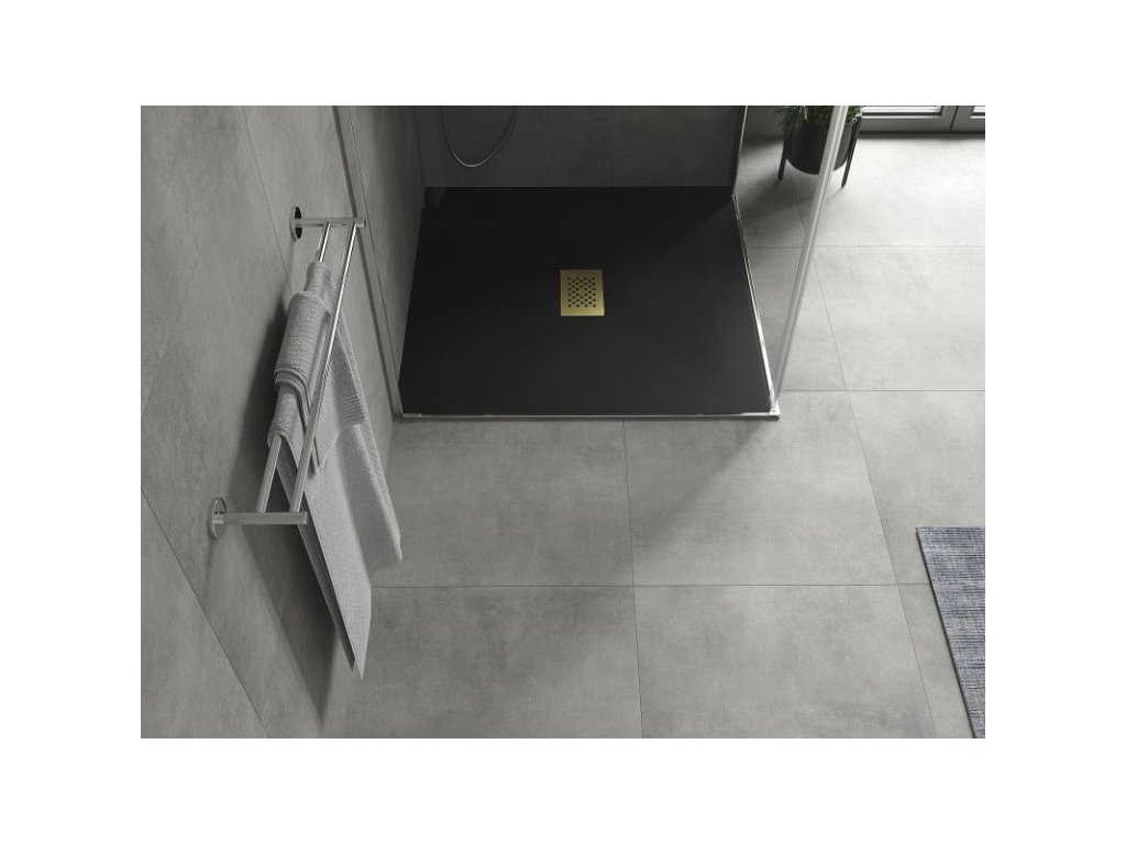 Mexen Hugo štvorcová sprchová vanička SMC 100 x 100 cm, čierna, zlatá mriežka - 42701010-G