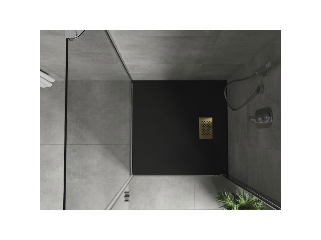 Mexen Hugo štvorcová sprchová vanička SMC 70 x 70 cm, čierna, zlatá mriežka - 42707070-G