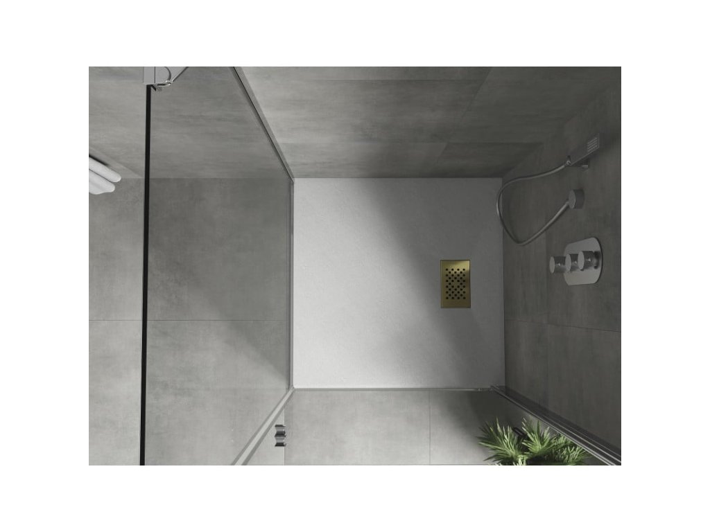 Mexen Hugo štvorcová sprchová vanička SMC 80 x 80 cm, biela, zlatá mriežka - 42108080-G