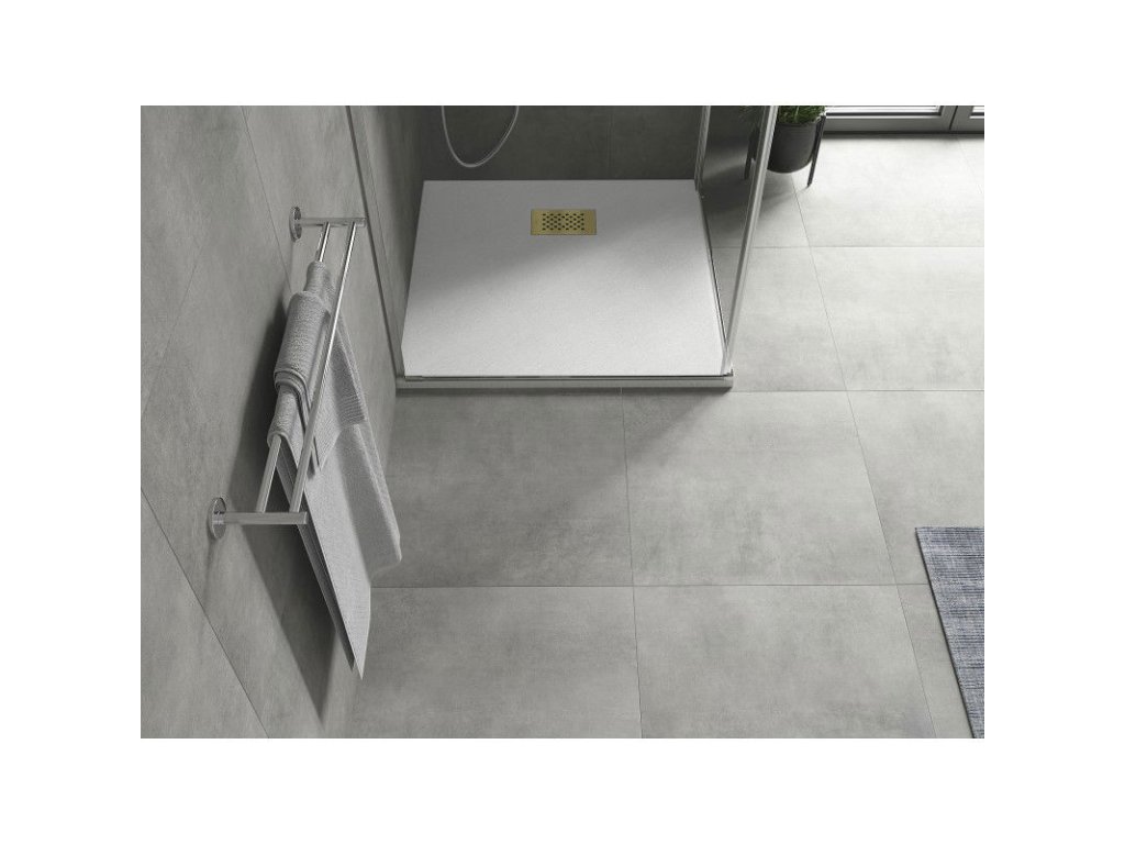 Moderná štvorcová sprchová vanička je ideálnym riešením pre vašu kúpeľňu. Má rozmery 80x80 cm a výšku len 2,6 cm, je ultratenká a zároveň odolná vďaka materiálu SMC. Má štruktúrovaný povrch, ktorý spája estetiku s odolnosťou. Možnosť inštalácie do podlahy alebo na podlahu a jednoduché čistenie sifónu zhora sú ďalšími výhodami. Zlatá povrchová úprava rámčeka mu dodáva elegantný, moderný vzhľad pre vašu kúpeľňu.Dodatočné parametre