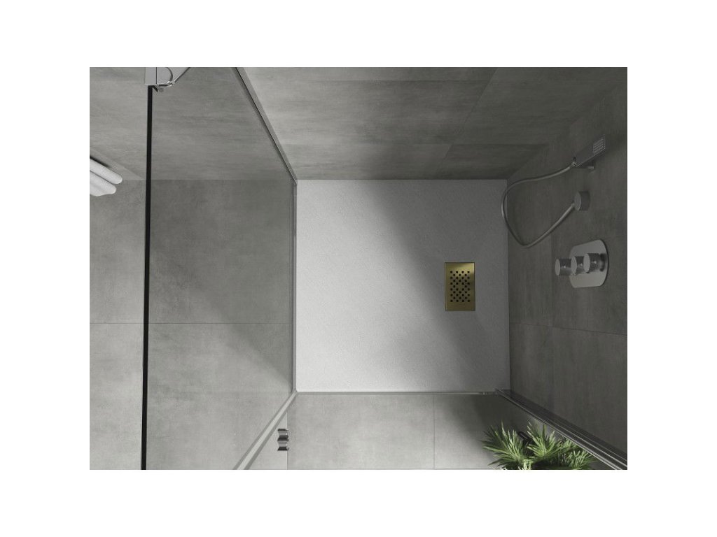 Mexen Hugo štvorcová sprchová vanička SMC 90 x 90 cm, biela, zlatá mriežka - 42109090-G