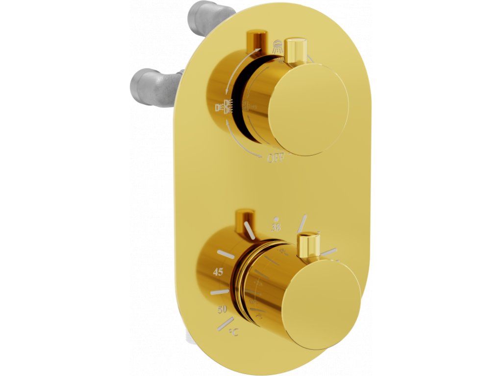 Mexen Kai termostatická vaňová a sprchová batéria, 3 výstupy, zlatá - 77602-50