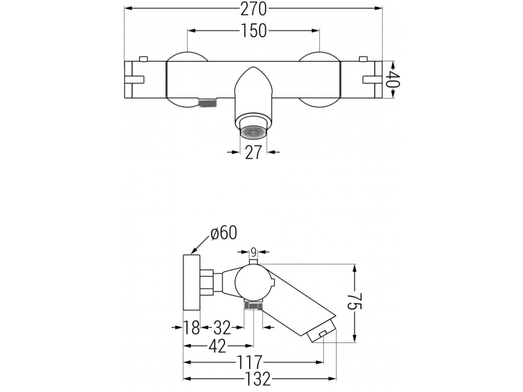 Mexen Kai termostatická vaňová batéria, biela - 77300-20