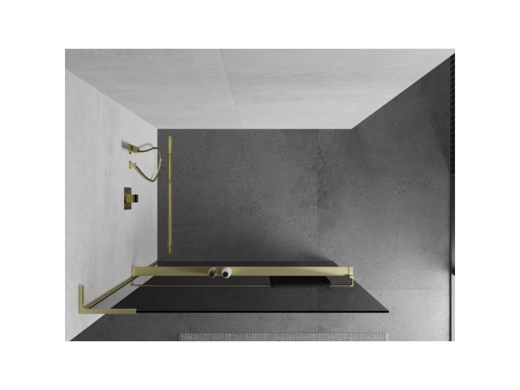 Mexen Kioto+ L sprchová stena s poličkou 100 x 200 cm, grafitová farba, brúsené zlato - 800-100-123-55-40