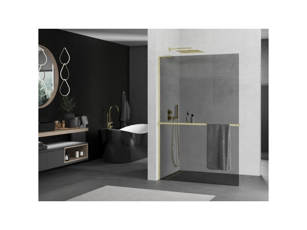 Mexen Kioto+ L sprchová stena s poličkou 70 x 200 cm, grafitová farba, brúsené zlato - 800-070-123-55-40