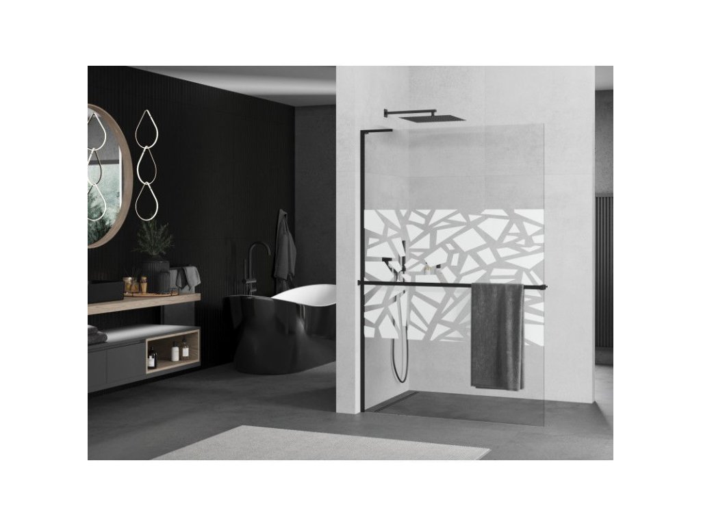 Mexen Kioto+ L sprchová stena s policou 100 x 200 cm, biely dizajn, čierna - 800-100-123-70-85
