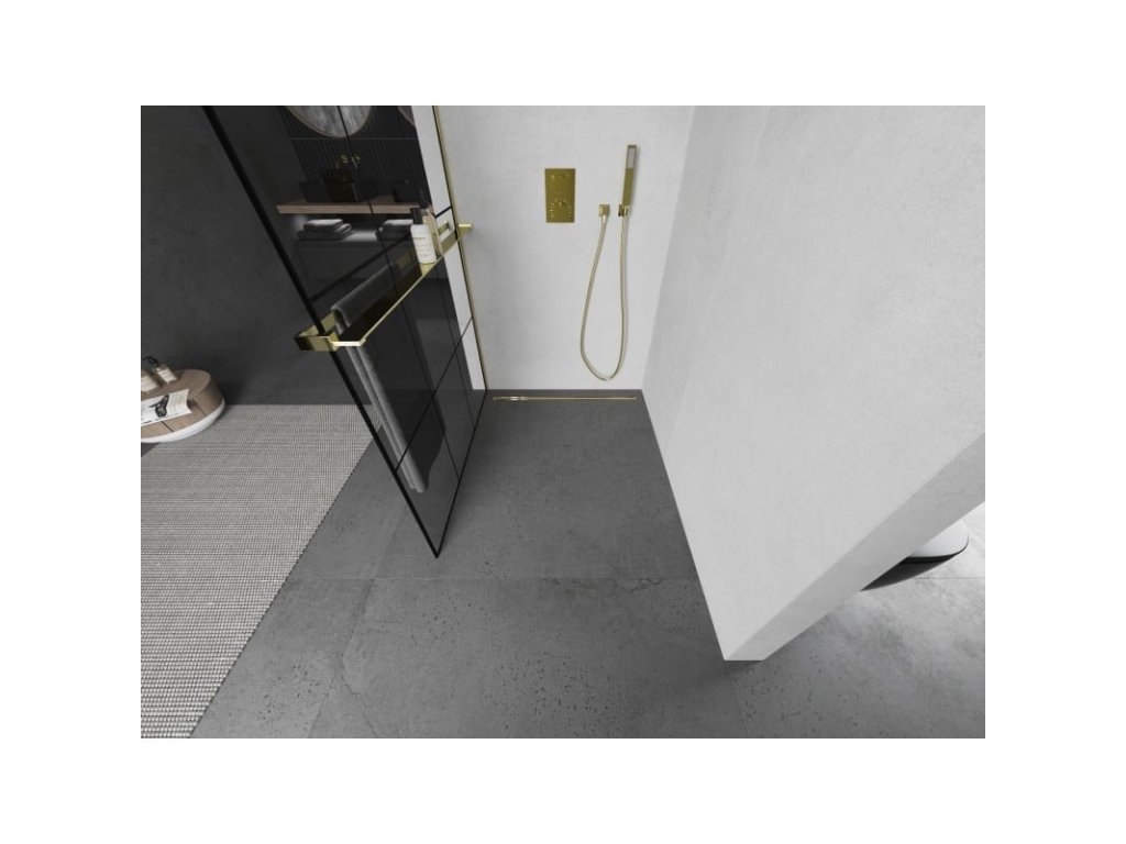 Mexen Kioto+ L sprchová stena s policou 100 x 200 cm, čierny vzor, zlatá - 800-100-123-50-77