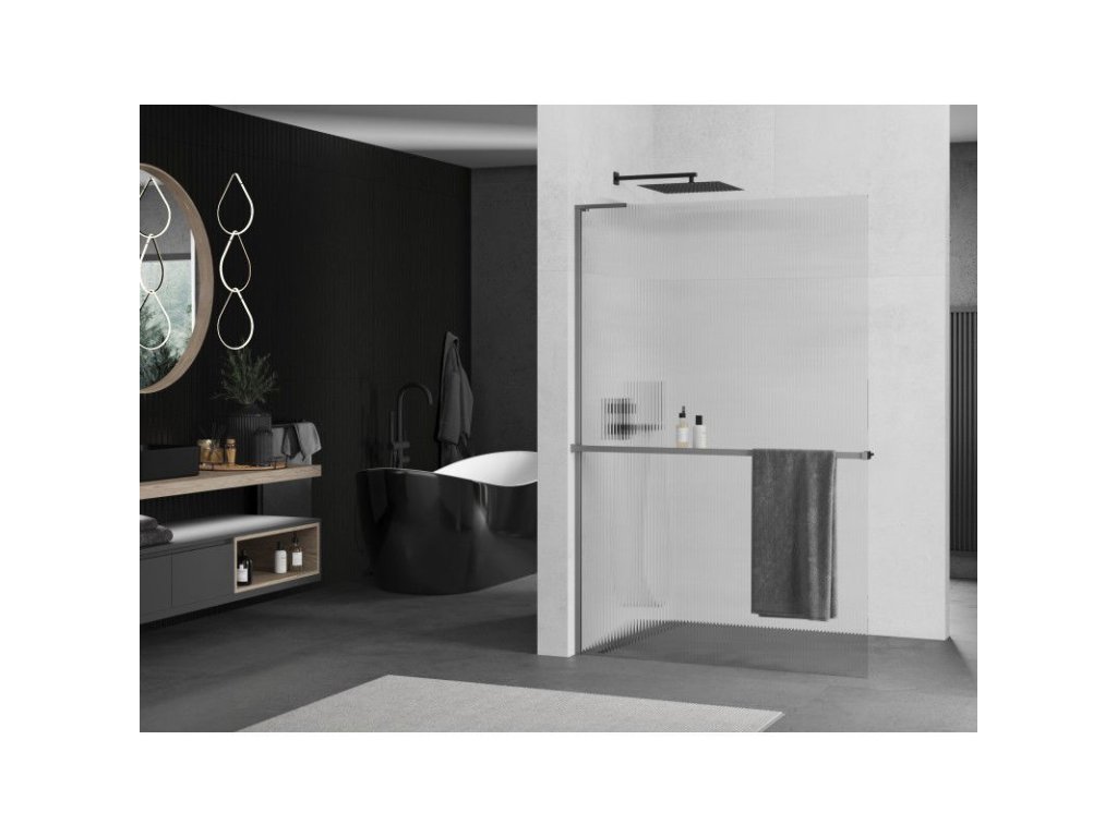Mexen Kioto+ L sprchová stena s policou 100 x 200 cm, pruh, pištoľový kov - 800-100-123-95-09