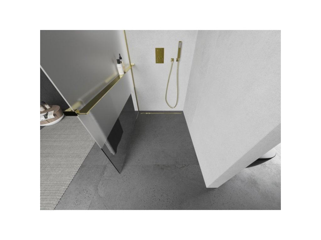 Mexen Kioto+ L sprchová stena s policou 100 x 200 cm, transparentná/mrazivá, zlatá - 800-100-123-50-35