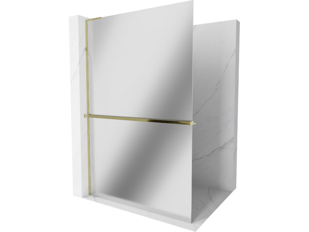 Mexen Kioto+ L sprchová stena s policou 100 x 200 cm, zrkadlo, zlatá - 800-100-123-50-50