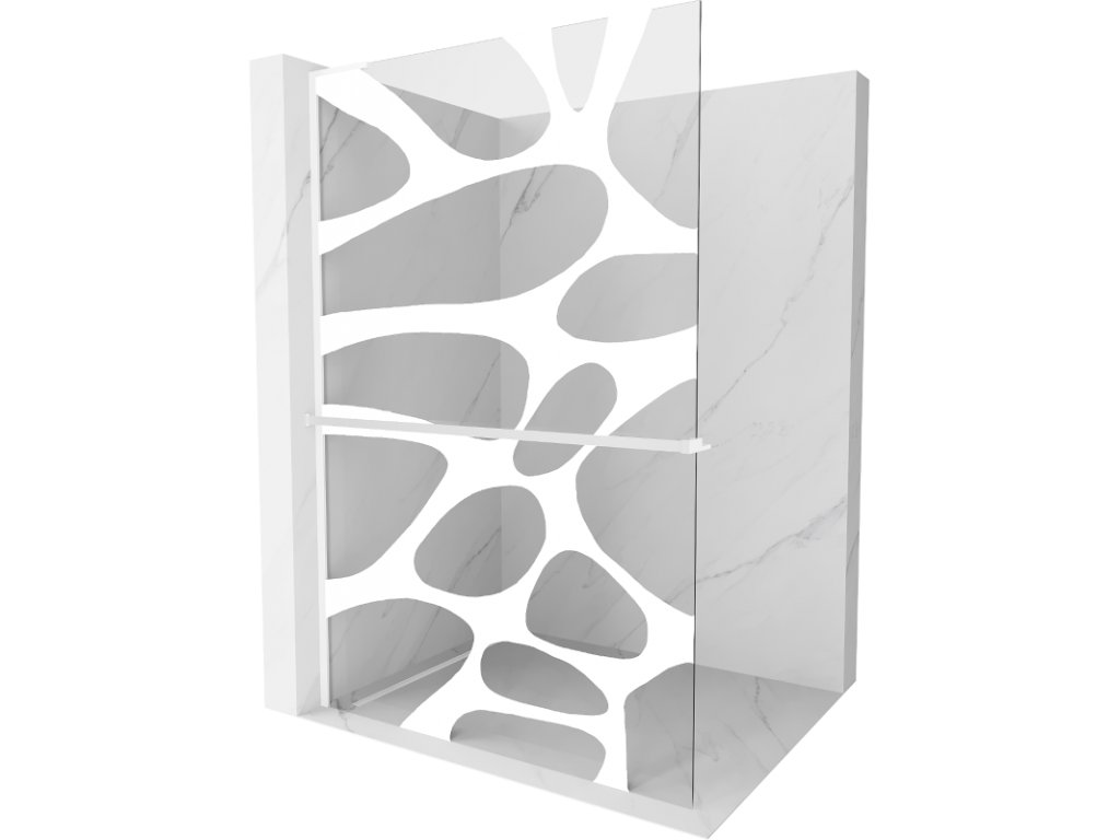 Mexen Kioto+ L sprchová stena s policou 120 x 200 cm, biely vzor, biela - 800-120-123-20-97