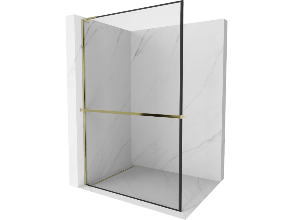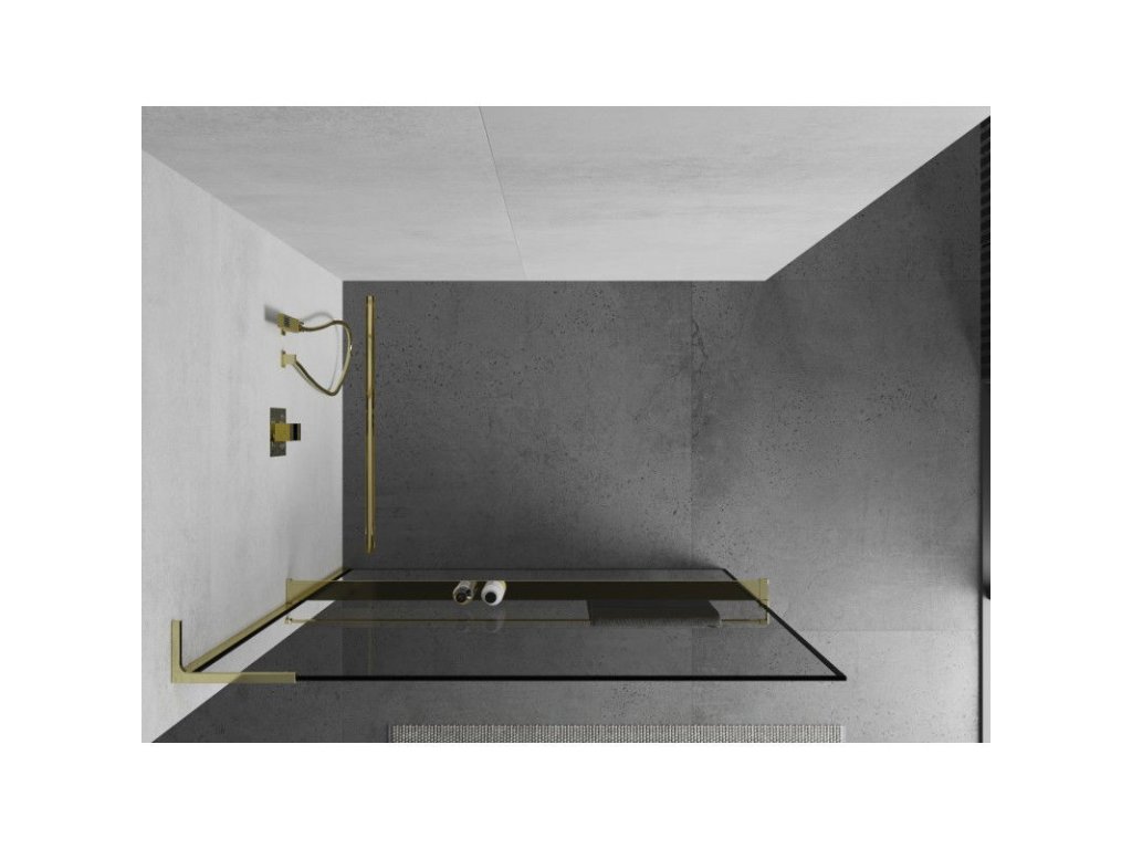 Mexen Kioto+ L sprchová stena s policou 120 x 200 cm, čierny vzor, zlatá - 800-120-123-50-70
