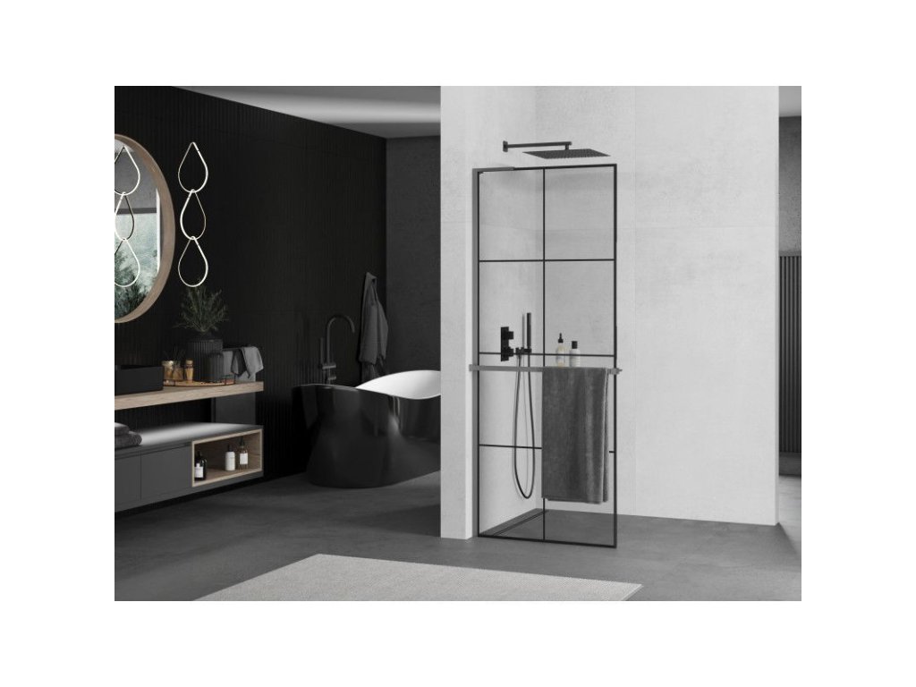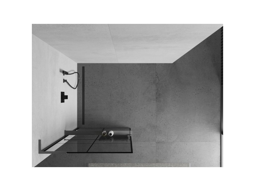 Mexen Kioto+ L sprchová stena s policou 70 x 200 cm, čierny dizajn, pištoľový kov - 800-070-123-95-77
