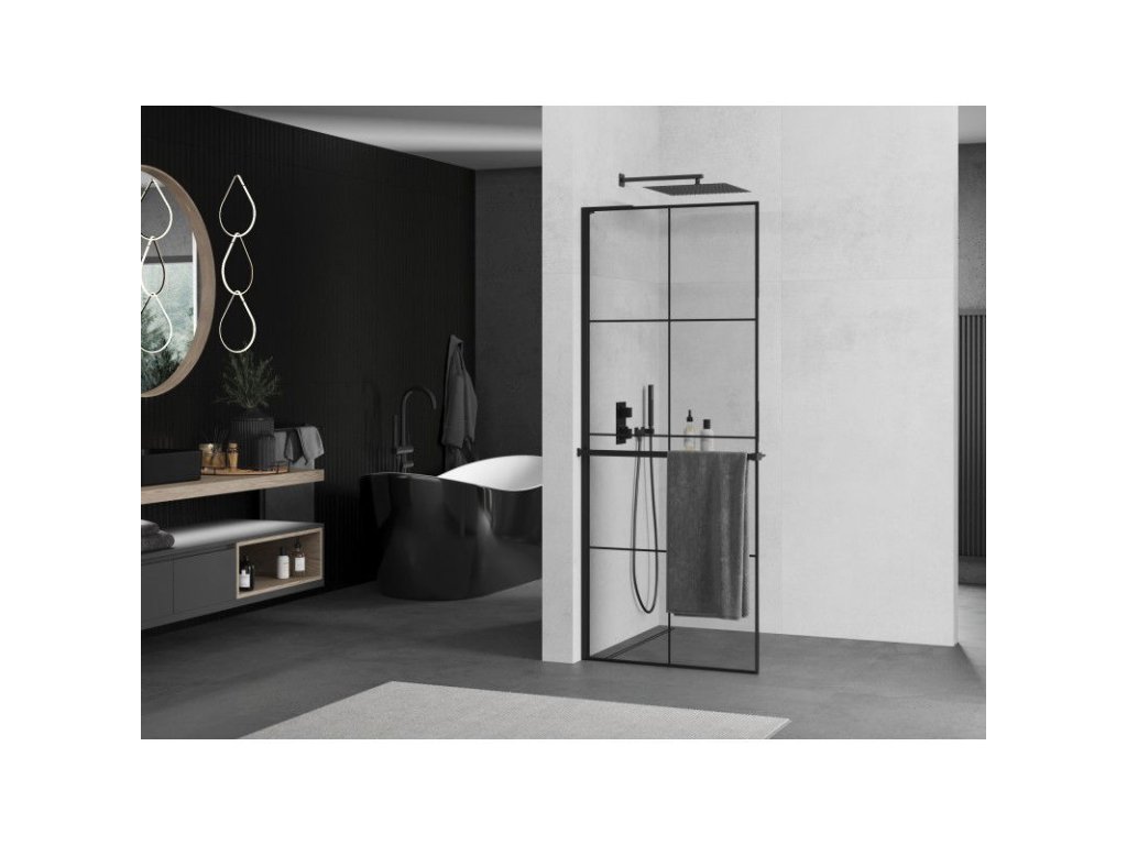 Mexen Kioto+ L sprchová stena s policou 70 x 200 cm, čierny vzor, čierna - 800-070-123-70-77