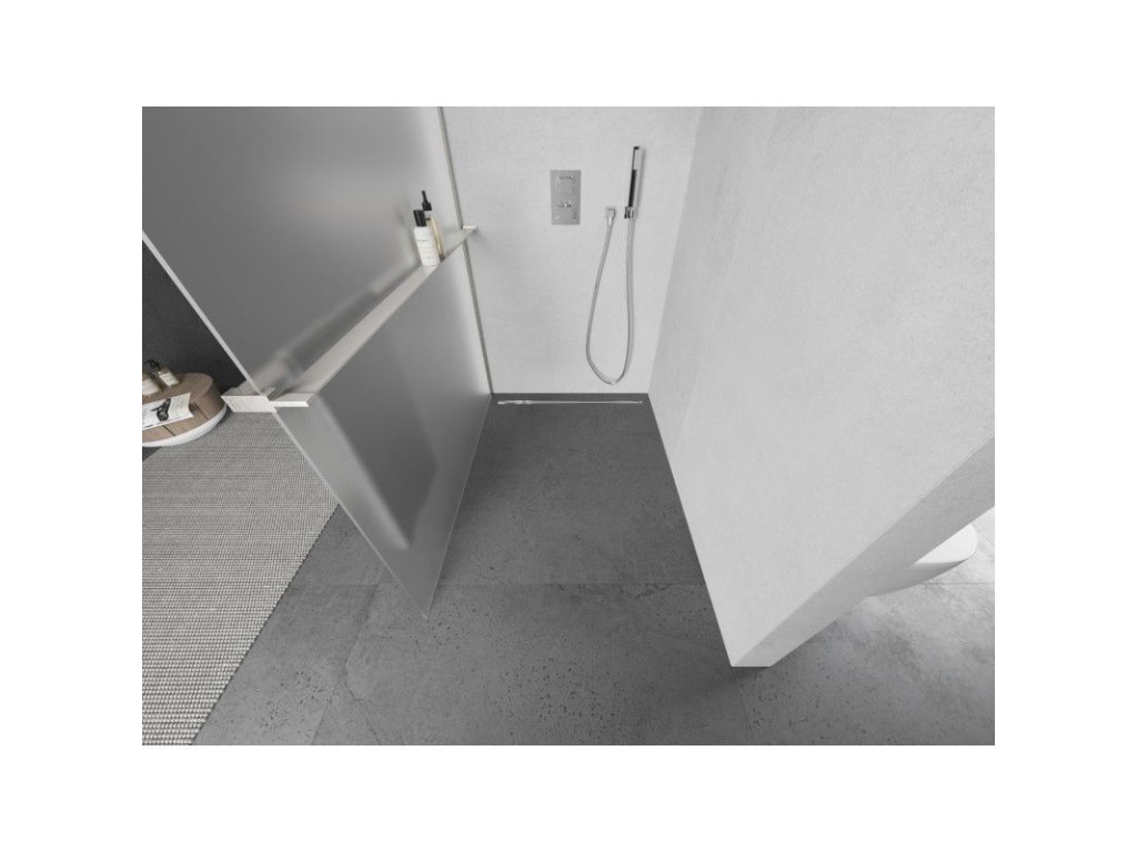 Mexen Kioto+ L sprchová stena s policou 70 x 200 cm, matná, brúsený nikel - 800-070-123-97-30