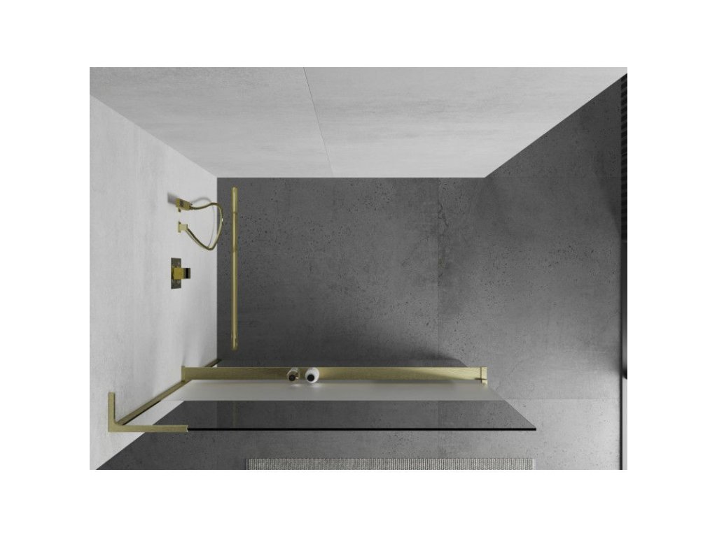 Mexen Kioto+ L sprchová stena s policou 70 x 200 cm, transparentná/mrazivá, brúsené zlato - 800-070-123-55-35