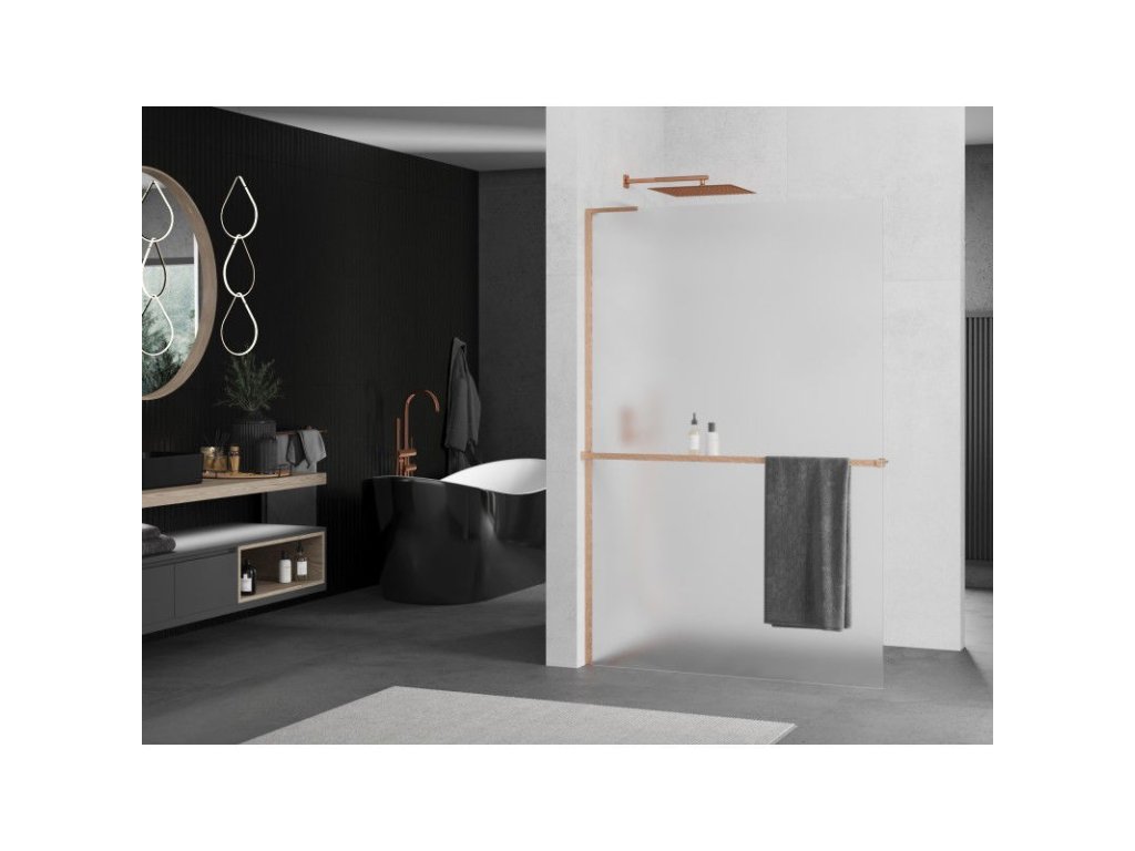 Mexen Kioto+ L sprchová stena s policou 80 x 200 cm, matná, brúsená meď - 800-080-123-65-30