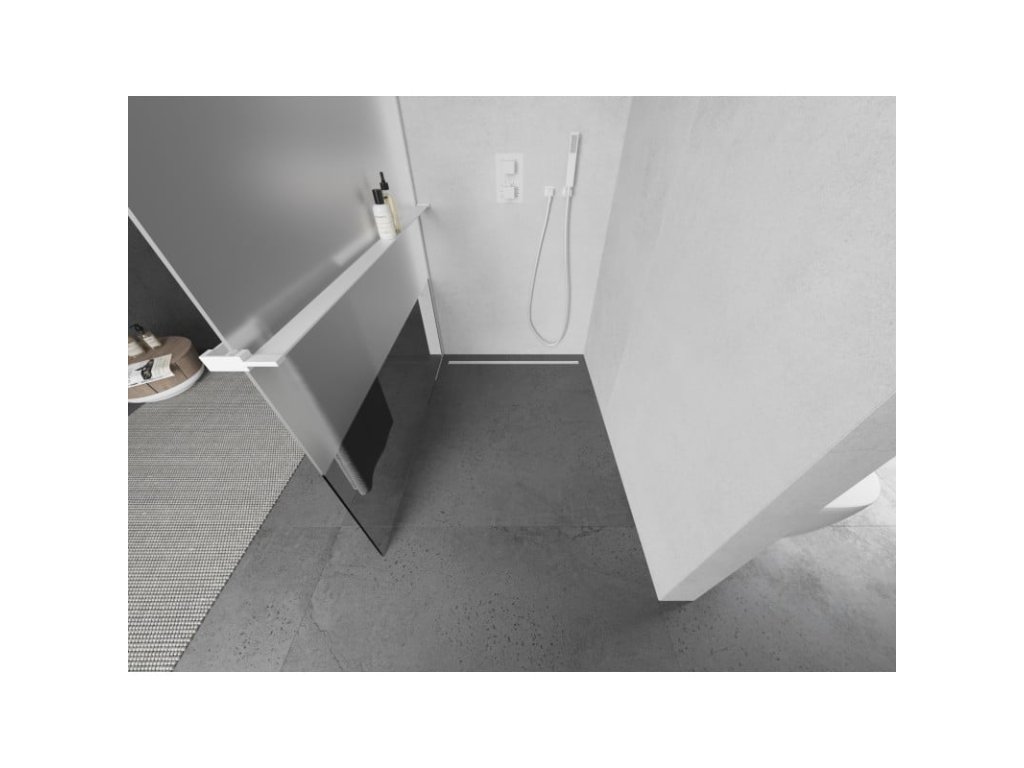 Mexen Kioto+ L sprchová stena s policou 80 x 200 cm, priehľadná/mrazivá, biela - 800-080-123-20-35