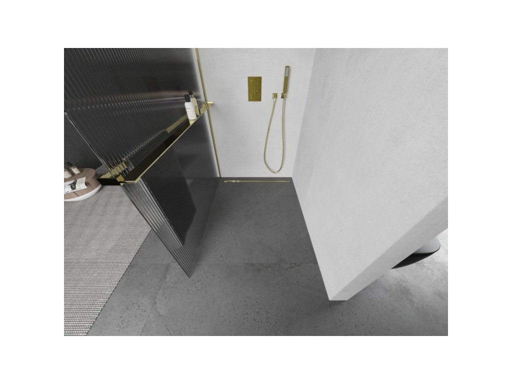 Mexen Kioto+ L sprchová stena s policou 80 x 200 cm, pruhovaná, zlatá - 800-080-123-50-09