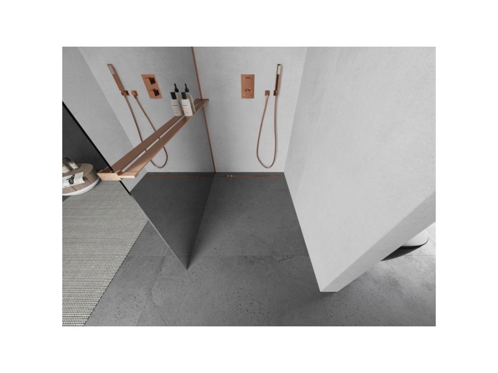 Mexen Kioto+ L sprchová stena s policou 80 x 200 cm, zrkadlo, brúsená meď - 800-080-123-65-50