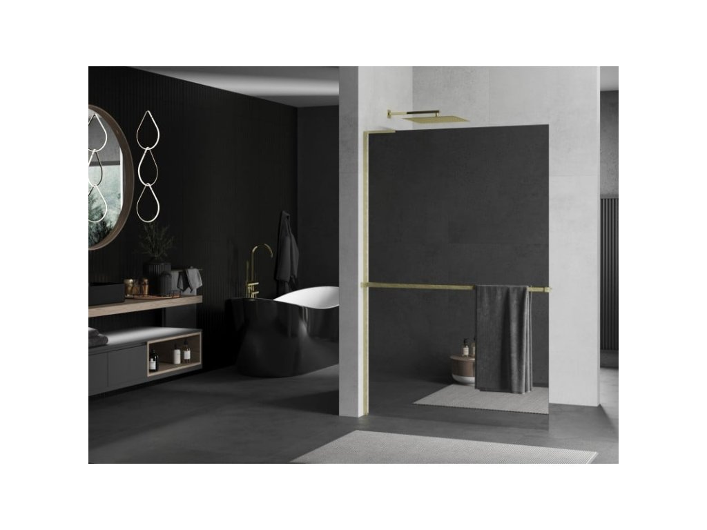 Mexen Kioto+ L sprchová stena s policou 80 x 200 cm, zrkadlo, brúsené zlato - 800-080-123-55-50