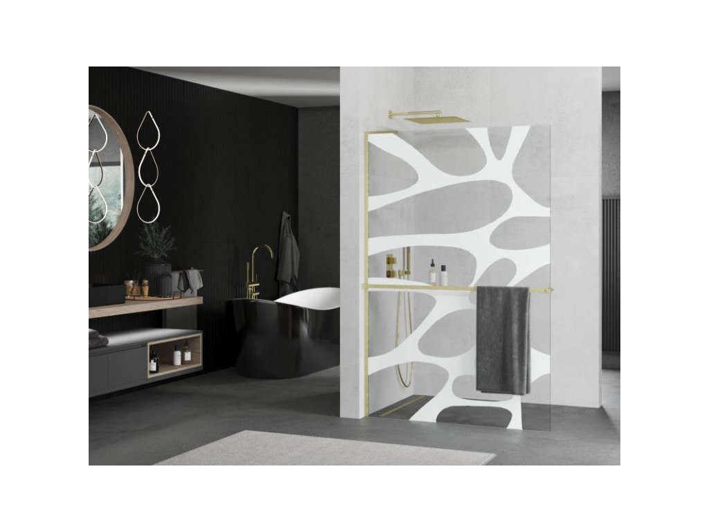 Mexen Kioto+ L sprchová stena s policou 90 x 200 cm, biele prevedenie, brúsené zlato - 800-090-123-55-97