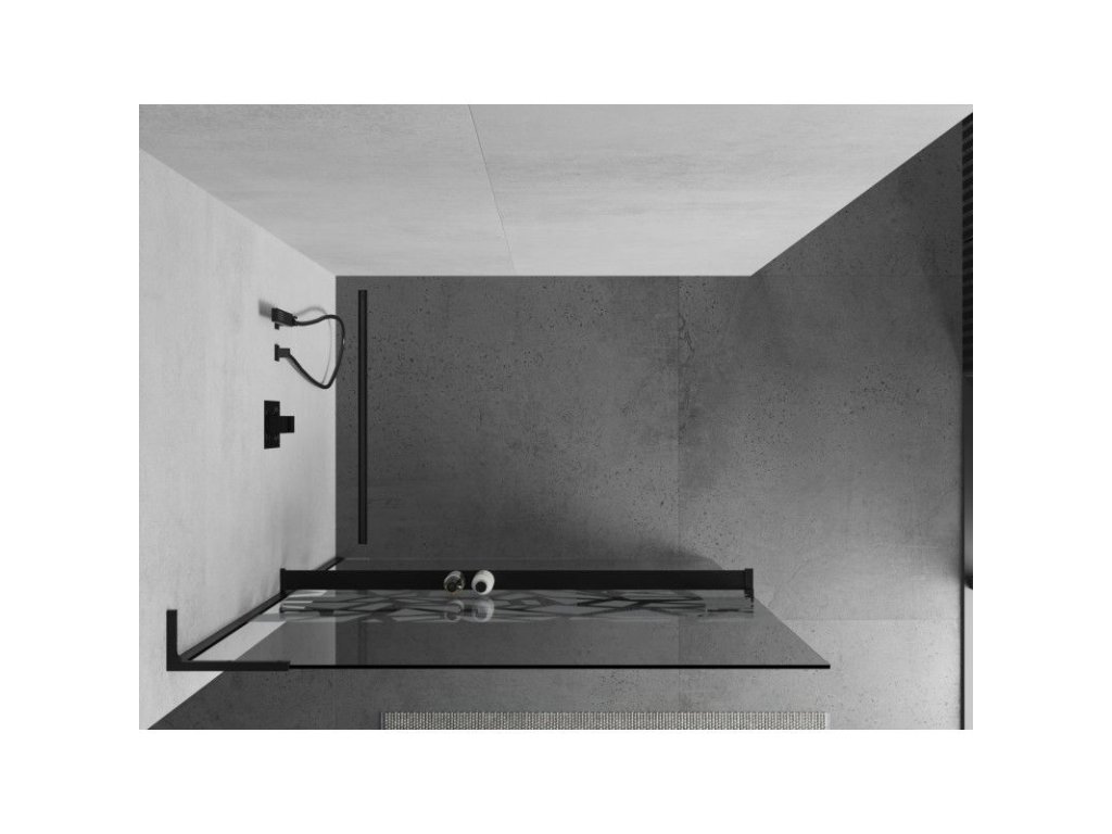 Mexen Kioto+ L sprchová stena s policou 90 x 200 cm, biele prevedenie, čierna - 800-090-123-70-85
