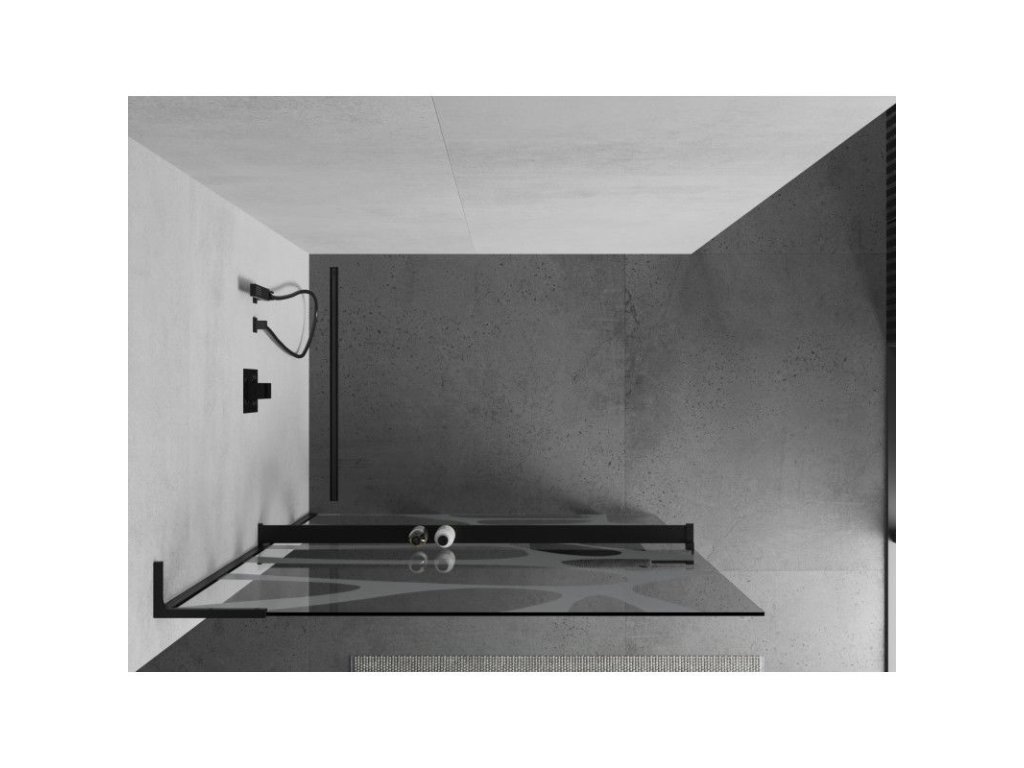 Mexen Kioto+ L sprchová stena s policou 90 x 200 cm, biele prevedenie, čierna - 800-090-123-70-97