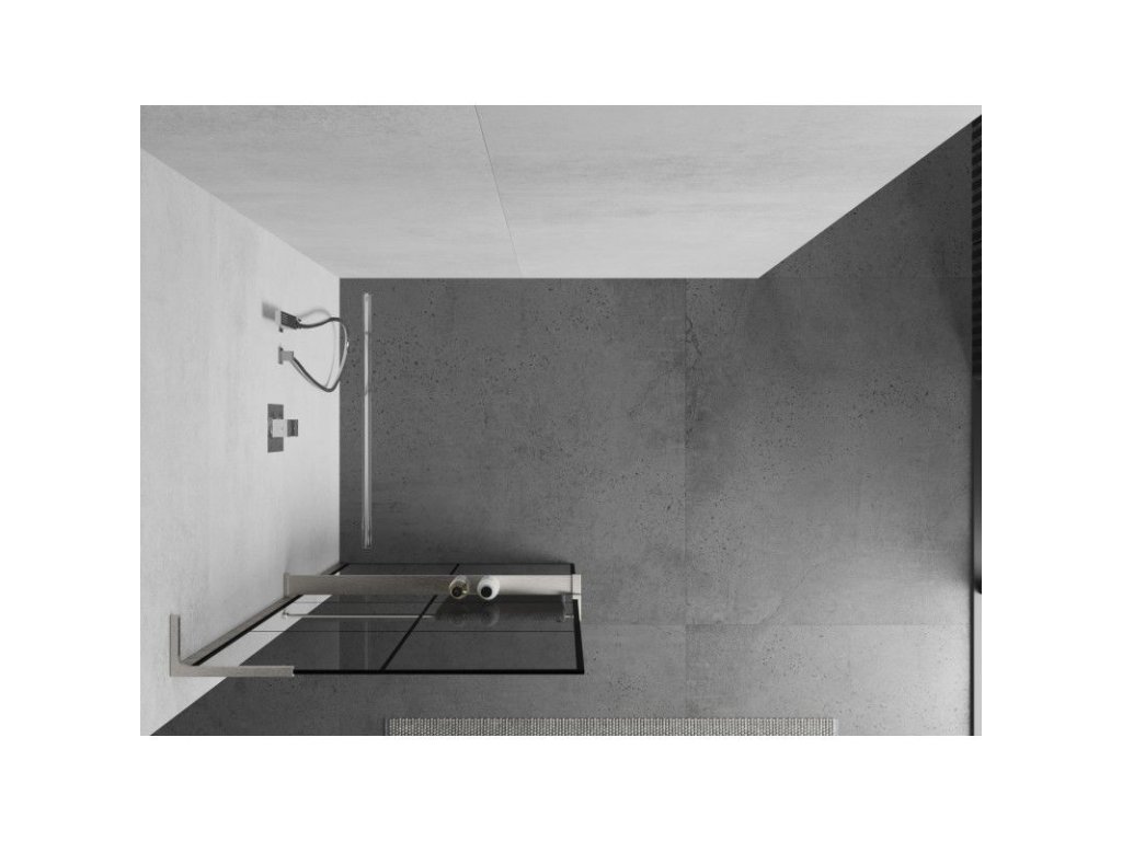Mexen Kioto+ L sprchová stena s policou 90 x 200 cm, čierne prevedenie, brúsený nikel - 800-090-123-97-77