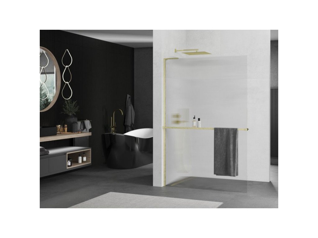 Mexen Kioto+ L sprchová stena s policou 90 x 200 cm, pruhovaná, brúsené zlato - 800-090-123-55-09