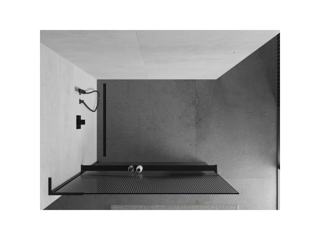 Mexen Kioto+ L sprchová stena s policou 90 x 200 cm, pruhovaná, čierna - 800-090-123-70-09