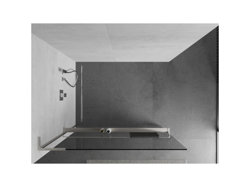 Mexen Kioto+ L sprchová stena s policou 90 x 200 cm, transparentná, brúsený nikel - 800-090-123-97-00