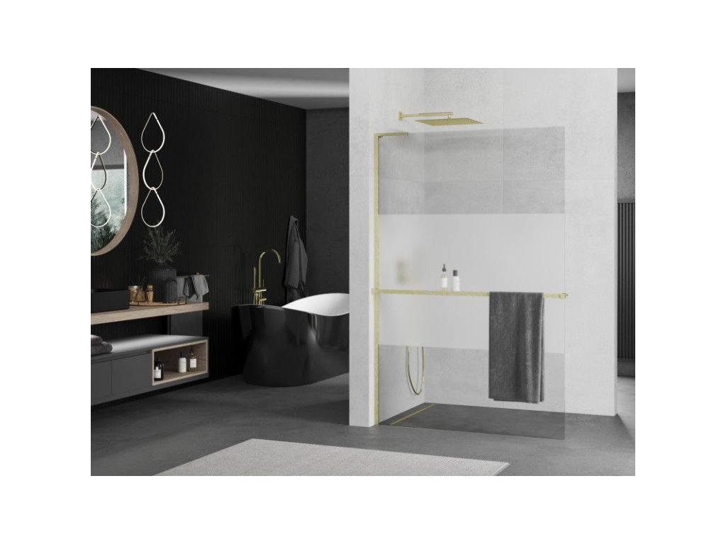 Mexen Kioto+ L sprchová stena s policou 90 x 200 cm, transparentná/mrazivá, brúsené zlato - 800-090-123-55-35