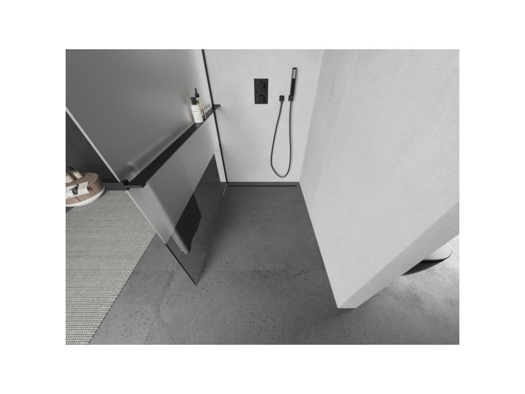 Mexen Kioto+ L sprchová stena s policou 90 x 200 cm, transparentná/mrazivá, čierna - 800-090-123-70-30