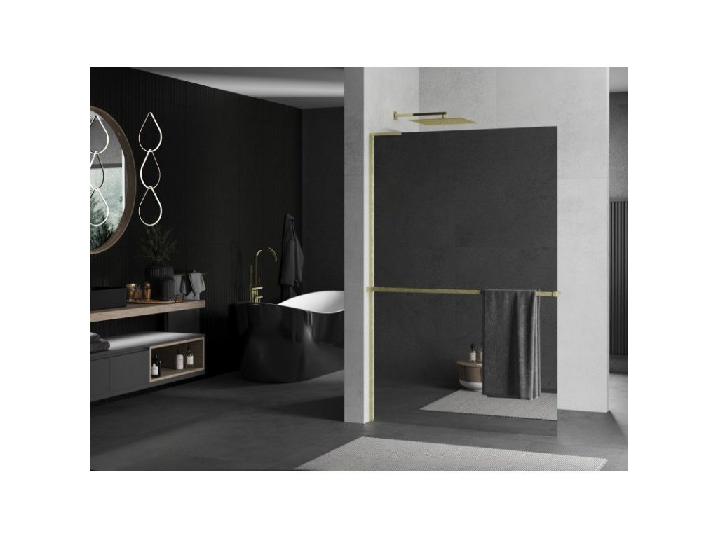 Mexen Kioto+ L sprchová stena s policou 90 x 200 cm, zrkadlo, brúsené zlato - 800-090-123-55-50