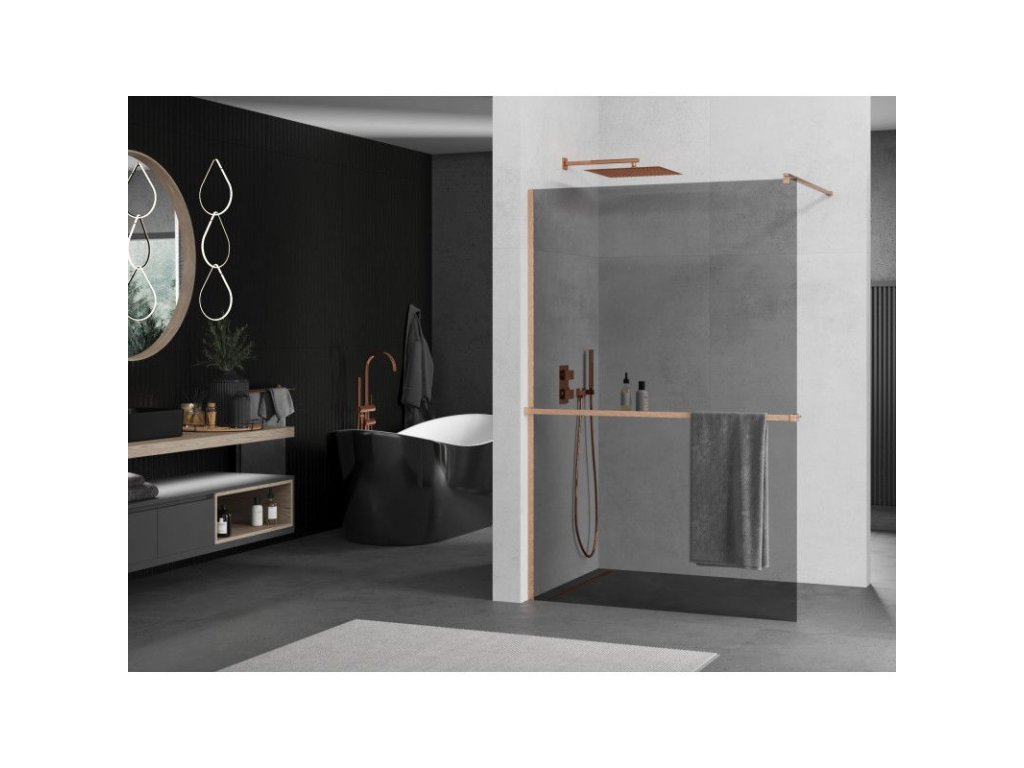 Mexen Kioto+ sprchová stena s policou 140 x 200 cm, grafit, brúsená meď - 800-140-121-65-40