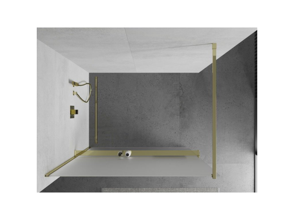 Mexen Kioto sprchová zástena s držiakom na uteráky a poličkou 100 x 200 cm, sklo námraza, 8 mm, zlatá - 800-100-121-50-30