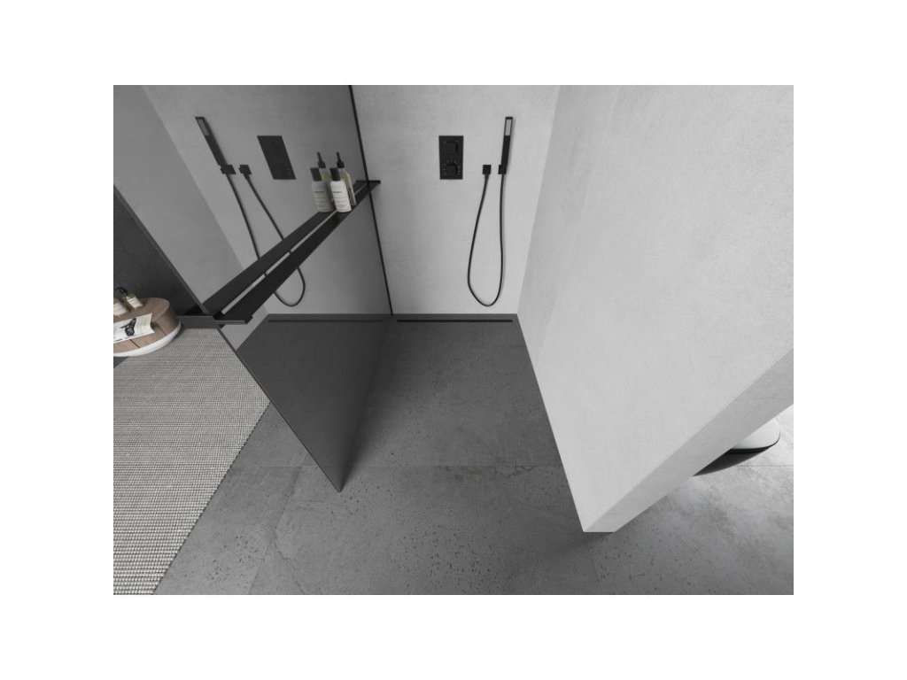 Mexen Kioto sprchová zástena s držiakom na uteráky a poličkou 100 x 200 cm, sklo zrkadlo, 8 mm, čierna - 800-100-121-70-50