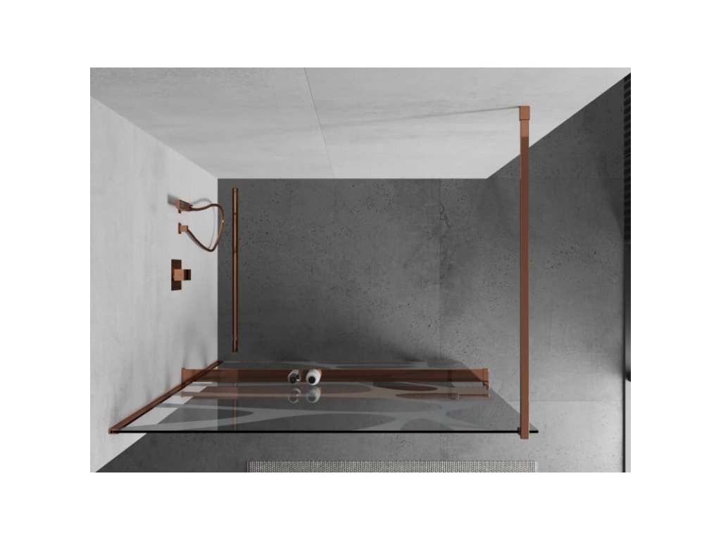Mexen Kioto sprchová zástena s držiakom na uteráky a poličkou 110 x 200 cm, priehľadné sklo / biely vzor, 8 mm, ružové zlato - 800-110-121-60-97