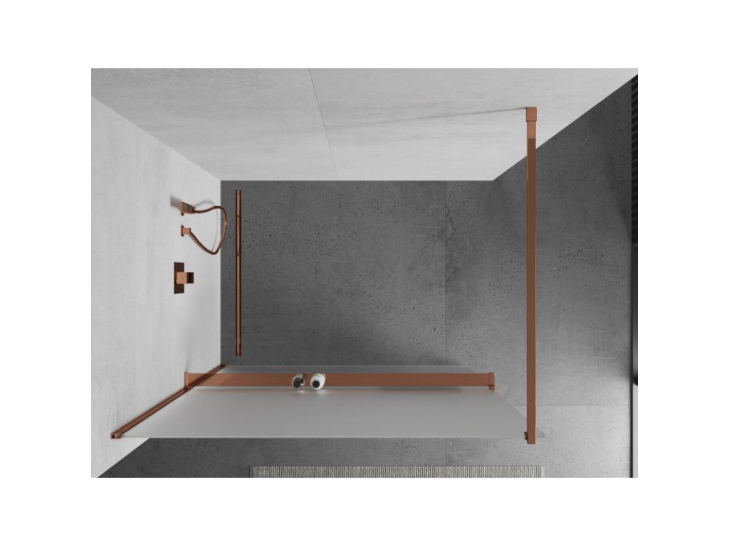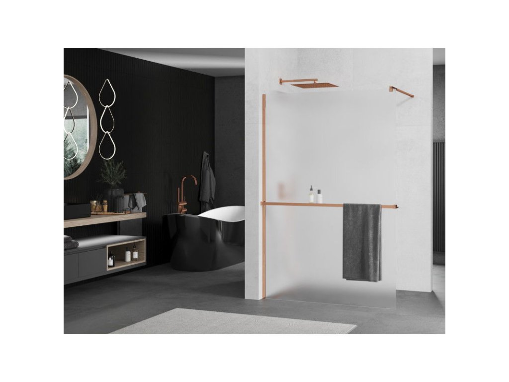 Mexen Kioto sprchová zástena s držiakom na uteráky a poličkou 110 x 200 cm, sklo námraza, 8 mm, ružové zlato - 800-110-121-60-30