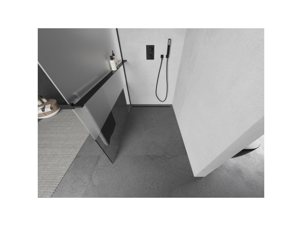 Mexen Kioto sprchová zástena s držiakom na uteráky a poličkou 110 x 200 cm, sklo priehľadné / námraza, 8 mm, čierna - 800-110-121-70-35