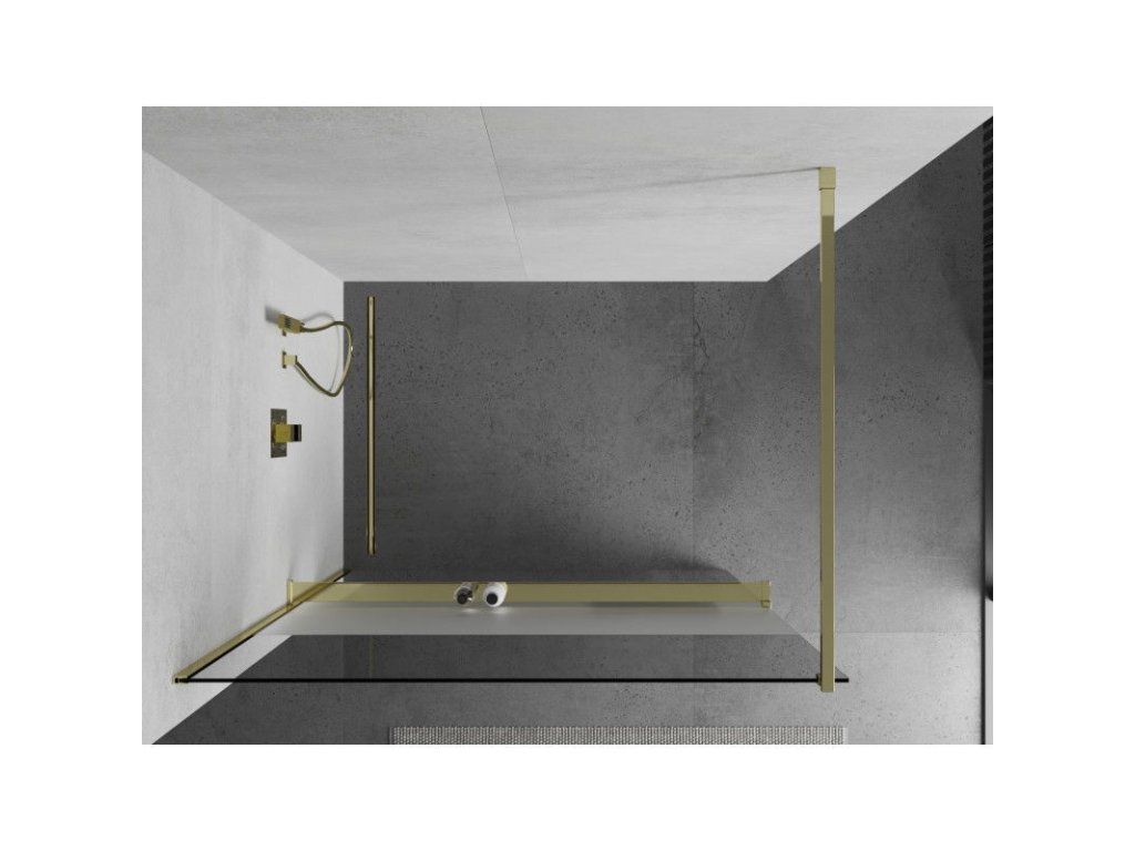 Mexen Kioto sprchová zástena s držiakom na uteráky a poličkou 110 x 200 cm, sklo priehľadné / námraza, 8 mm, zlatá - 800-110-121-50-35