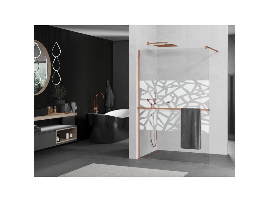 Mexen Kioto sprchová zástena s držiakom na uteráky a poličkou 120 x 200 cm, priehľadné sklo / biely vzor, 8 mm, ružové zlato - 800-120-121-60-85