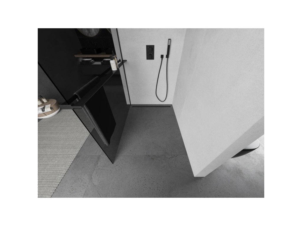 Mexen Kioto sprchová zástena s držiakom na uteráky a poličkou 120 x 200 cm, šedé sklo, 8 mm, čierna - 800-120-121-70-40