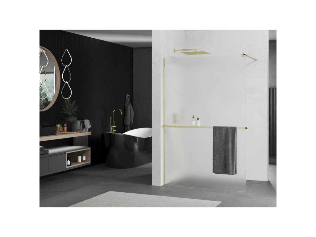 Mexen Kioto sprchová zástena s držiakom na uteráky a poličkou 120 x 200 cm, sklo námraza, 8 mm, zlatá - 800-120-121-50-30