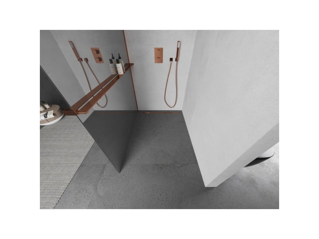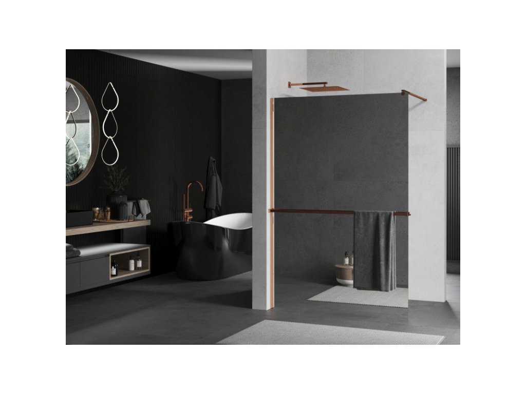 Mexen Kioto sprchová zástena s držiakom na uteráky a poličkou 120 x 200 cm, sklo zrkadlo, 8 mm, ružové zlato - 800-120-121-60-50